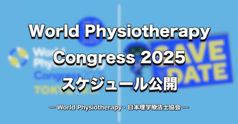 World Physiotherapy Congress 2025. The world physiotherapy congress 2025 will take place in tokyo, japan. World physiotherapy provides a listing of events relevant to physiotherapists around the world.